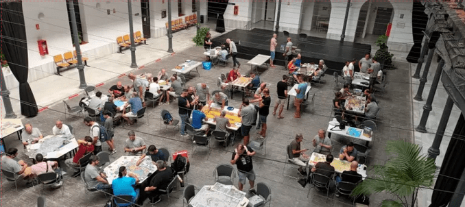 The Edificio Constitución 1812 has a central patio where attendees can set up games to play, join others’ games, and where both publishers and authors can demonstrate their latest releases and prototypes of upcoming games.